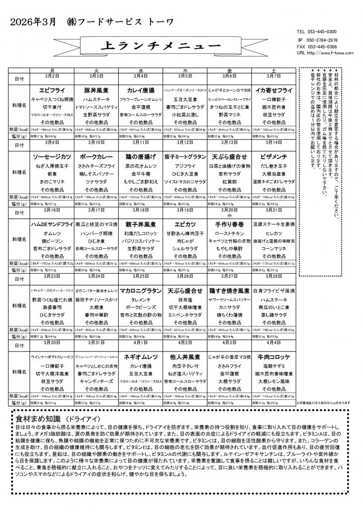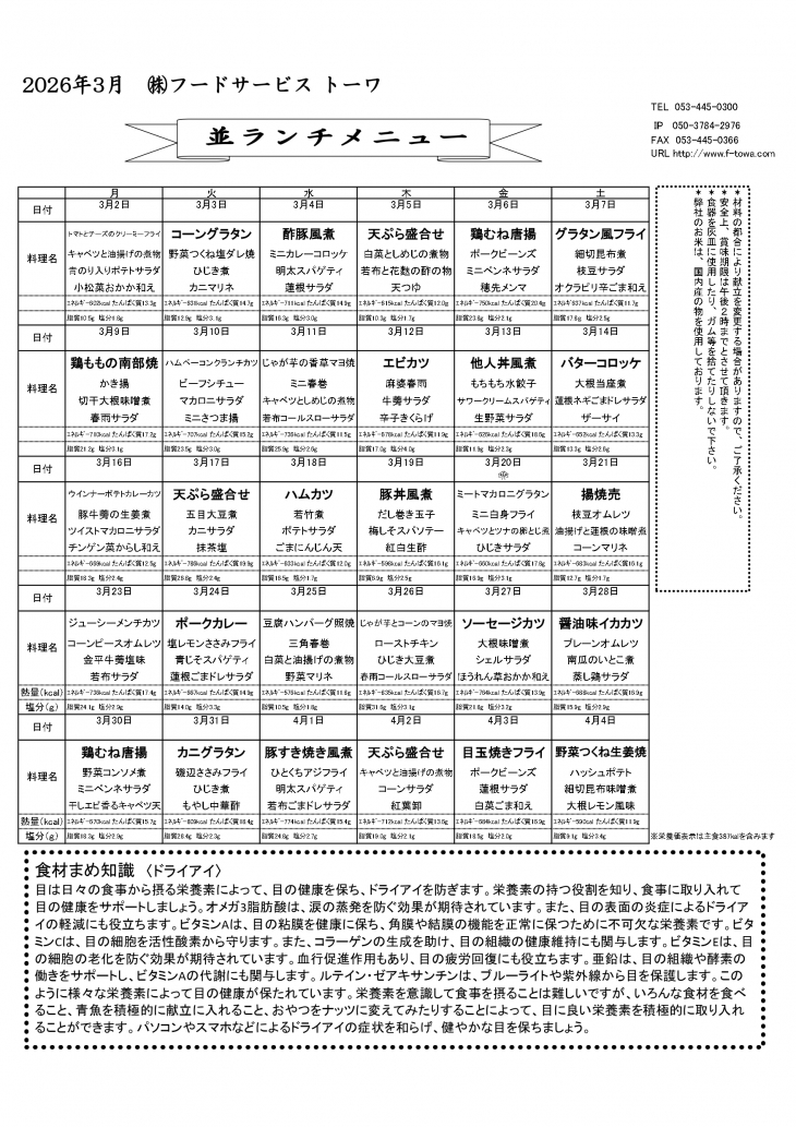 今月の献立表